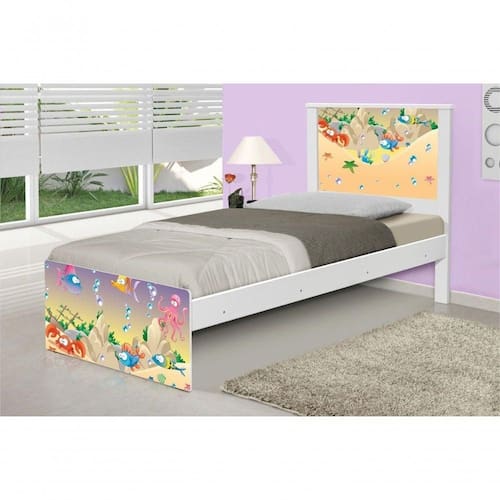 Cama Solteiro Fundo Do Mar Feliz Com Colchão Cama Solteiro Juvenil Barcelona Adesivada Fundo do Mar Feliz com Colchão Ref. 1458