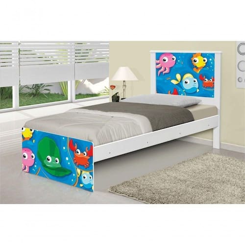 Cama Solteiro Fundo Do Mar Peixinhos Com Colchão Cama Solteiro Juvenil Barcelona Adesivada Fundo do Mar Peixinhos com Colchão Ref. 1459