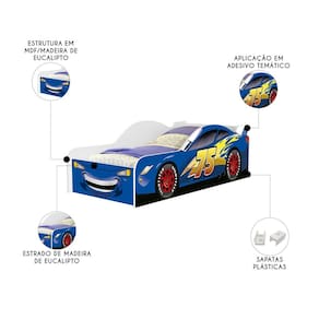 Cama Solteiro Infantil 188x88cm Personagens Carro Azul Z53 - Mpozenato