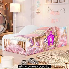 Cama Solteiro Infantil 188x88cm Personagens Carruagem Rosa Z53 - Mpozenato