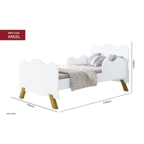 Além da beleza e conforto, a Cama Solteiro Infantil Cambel Angel Branca traz o conforto e um ambiente super saisfatório para seu filho, proporcionando as noites de sono que a criança merece. Venha conferir!!A - Altura: 0,72mL - Largura: 0,76mP - Profundidade: 1,56mMaterial da estrutura: MDFAcabamento: Pintura UVEscala de brilho: FoscaTipo de Cama: Mini CamaTamanho do colchão indicado para a cama: 70cm x 150cmEstrutura do estrado: MadeiraInformações complementares: Não possui.Possui Pés: SimQuantidade de Pés: 4Material dos Pés: Madeira MaciçaRecomendações de limpeza e manutenção: Pano umedecido. Não aplicar lustra móveis.Peso máximo que suporta - distribuído: 40kgProduto desmontado (necessita de montagem): SimComplexidade da montagem: MédiaSistema da montagem: Parafusos, minifix, cavilhas, etc.Manual da montagem: Na caixaGarantia: 3 mesesQuantos volumes: 1Tipo de embalagem: Caixa de papelão lacrada Peso do(s) produto(s): 16kgSobre as imagens ilustrativas:- As imagens ambientadas são meramente ilustrativas e podem apresentar itens que não compõe o produto.- Objetos decorativos que aparecem na foto não acompanham o produto.- As cores do produto podem variar de acordo com o monitor, a iluminação do ambiente ou sua percepção visual.- Atenção: pequenos detalhes e acabamentos, que não ficam evidentes na foto, estão detalhados na descrição dos móveis.Sobre a entrega e montagem:- Os móveis são entregues desmontados e com manual de montagem, salvo algumas exceções.- Verifique a complexidade antes de decidir montar sozinho ou contrate um profissional de sua confiança.- Montagem, desmontagens, e instalações devem ser contratadas pelo cliente.- Confira as dimensões antes da compra, e certifique-se de que o produto passará por elevadores, portas e corredores, já que nossa entrega não inclui a subida de lances de escada ou o içamento de produtos..