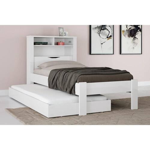 CARACTERÍSTICAS DE MÓVEIS Tipo de Estrutura do Móvel - MDF/MDP Tipo de Pintura - UV - Texturizada Tipo de Acabamento da Pintura - Alto Brilho - Fosca Tamanho do colchão para usar na cama - Solteiro 88x188 Quantidade de Prateleiras - 2 Prateleiras Garantia - 3 meses