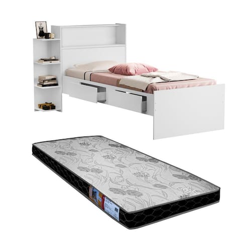 Cama Solteiro Isa Com Gavetas + Colchão Solteiro - Branco