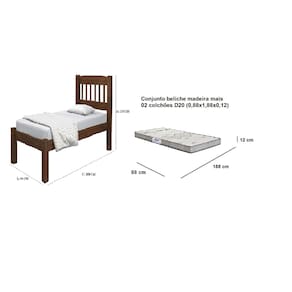 Cama Solteiro Itália madeira com 01 colchão (88x188x12) gazin d20 - Marrom Escuro