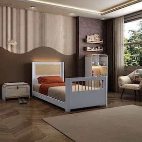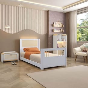 1x Cama Solteiro Juvenil Reversível em Rattan com Led Wave Branco/Natural Largura: 202,2 cm Altura: 91 cm Peso: 31 kg Profundidade: 94,2 cm Necessita Montagem: Sim