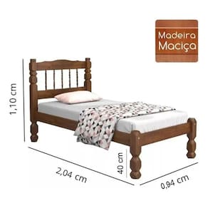 Características Gerais- Para Colchão 0.88 x 1.88 - Produto fabricado em 100% Madeira Maciça Pinus.- Espessuras dos pês 0.8 x 0.8 cm- Possui Estrado Reforçado;- Possui um Fino Acabamento;.- Ripas e sarrafos do estrado em madeira maciça.- Produto versátil encaixa em vários ambientes.- Lindo design.- Não acompanha colchão