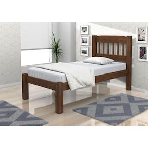Cama solteiro itália castanho Madeira maciça Colchão 1,90 x 0,88 (COLCHÃO NÃO ACOMPANHA O PRODUTO) Contém 02 lateral 05 lastros compridos 05 travessa eucalipto Contém 02 volumes, sendo 1 volume lateral e peseira e 01 volume cabeceira peso 22 kg Dimensão: Pé 8x8 espessura Atura pé: 1,10 m Profundidade: 0,94 cm Comprimento: 2,08 m