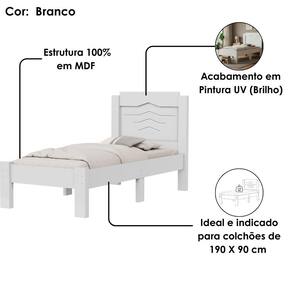Cama de Solteiro Sofia, prático e moderna, desenvolvida para facilitar sua rotina com estilo! Estrutura 100% MDF de (6/15/20 mm) e acabamento UV fosco. Com design moderno é composta por cantos retos, painel de cabeceira com recortes emoldurados e detalhes em frisos de baixo relevo, estrados reforçados sendo ideal e indicado para colchões tamanhos solteiro de 190X90 cm (COLCHÃO NÃO INCLUSO), suportando até 110 kg distribuídos e pés retos reforçados de 25 mm. Este produto será entregue em 2 volumes.