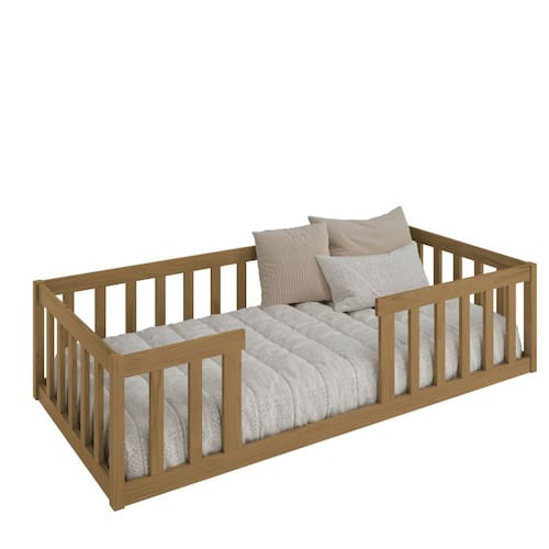Seu projeto montessoriano, estimula a independência da criança, deixando-a descobrir por si só os primeiros passos e obstáculos, de forma segura, onde ela sozinha irá subir e descer da cama. Uma peça ideal para trazer a diversão e a segurança para os dias e noites das crianças. A cama conta com uma grade alta em todo seu redor garantindo maior segurança durante as noites.