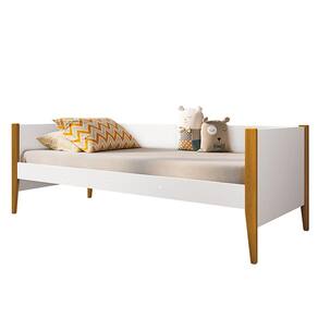 Cama Solteiro Noah Branco Acetinado com Pés Amadeirado - Reller