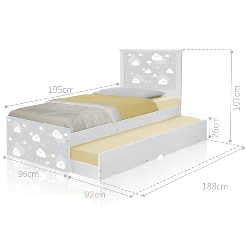 ACama Solteiro Barcelona Nuvem Cinza Menino e Menina com Auxiliar e Colchãoé belíssima e conta com um design funcional, que ocupa pouco espaço no ambiente.