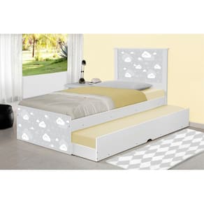 Cama Solteiro Barcelona Nuvem Cinza Menino e Menina com Auxiliar e Colchão