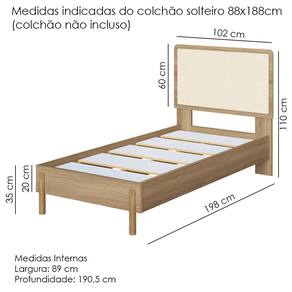 Cama Solteiro 27058 combina design escandinavo com a praticidade para o dia a dia. Estrutura em MDP (15/25mm) e acabamento em pintura BP. No estilo minimalista a cama é composta por aplique de Tela Sintética (PVC com poliéster), pés em madeira maciça Eucalipto (centrais em MDP 25mm) e furação extra (na cabeceira) para ajuste de altura na hora da montagem. Medidas indicadas do colchão solteiro 88x188cm (não acompanha colchão). Produto será entregue em 02 volumes.