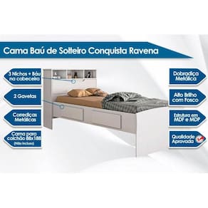 Material de Estrutura - MDF/MDP Tipo de Pintura - Ultravioleta Tipo de Acabamento da Pintura - Alto Brilho Diferenciais dos Móveis de Quarto - Móvel c/ Baú Tamanho da Cama - Solteiro Tamanho do Colchão Indicado - Solteiro 88x188 Diferenciais das Camas - c/ Gavetas