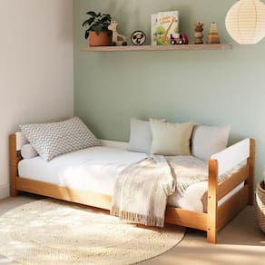 A Cama Solteiro Reversível Aria Casatema MadeiraOriginals é a essência da Linha Aria, uma peça que evolui com seu filho, unindo a força da madeira maciça com a leveza do design inteligente. Fabricada 100% em madeira de pinus com acabamento em verniz fosco nogueira e toques de MDF laqueado branco, esta cama é um investimento em Qualidade e Durabilidade, garantindo anos de uso seguro e confortável. Sua característica reversível é a chave para o conceito da linha: pode ser montada baixa, no estilo montessoriano, estimulando a autonomia dos pequenos, ou na altura convencional, adaptando-se perfeitamente ao crescimento. A solidez da estrutura garante a Segurança Prioritária, proporcionando tranquilidade aos pais. Com seu design atemporal, que incorpora a fluidez da madeira e os contornos suaves, ela adiciona um Toque de Sofisticação e Aconchego ao quarto, criando um refúgio acolhedor que acompanha as fases da infância com harmonia e poesia. Acompanha Cama Auxiliar: Não Acompanha Colchão: Não Acompanha Dossel: Não Acompanha Móbile: Não Acompanha Suporte para Mosquiteiro: Não Altura do Estrado até o Chão: 30,5 cm Ambiente Principal: Quarto Infantil codigo_ean: 7900288269218 Complexidade da Montagem: Média: pode ser montado por mais de uma pessoa e/ou necessite de maior conhecimento para montagem Cor: Nogueira/Branco Cor do Produto: Nogueira/Branco Escala de Brilho: Semi-Fosco Itens Inclusos: 1 Cama Solteiro, Manual de Montagem e Kit Ferragens Linha ou Coleção: Aria Manual de Montagem e Instalação: https://product-hub-prd.madeiramadeira.com.br/460456918/documents/9528e0aa-e502-4ccb-9bfd-baa0150756943287530338717611429512962.pdf Marca: Casatema Material do Estrado: Madeira Maciça Material Principal: Madeira Maciça modular: Não Montagem Flex: Pode ser montado como cama padrão ou montessoriana Necessita Montagem: Sim Origem do Produto: Nacional Permite a Utilização de Cama Auxiliar: Sim Peso: 31,5 kg Possui Baú: Não Possui Gavetas: Não Possui Pés: Não Possui Portas: Não Possui Prateleiras: Não Recomendações de Uso, Manutenção e Limpeza: Na limpeza não utilizar produtos químicos e abrasivos, usar apenas um pano umedecido, para garantir a maior durabilidade do móvel. Sistema de Montagem: Parafusos, cavilhas e porcas Suporta Até (kg): 100 kg Tamanho do Colchão Indicado (L x C): 188cm x 88cm Tipo de Cama: Infantil Tipo de Colchão: Solteiro Tipo de Estrado: Fixo Tipo de Grade de Proteção: Grade Tipo de Madeira Maciça: Pinus