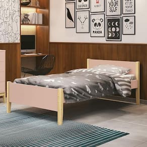 Cama Solteiro Simba Rosa Fosco Com Pés Madeira Natural E Colchão D33 - Reller Móveis Rosa Fosco