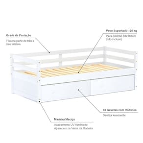 Material Principal: Madeira Maciça | Cor: Branco | Necessita Montagem: Sim | Acompanha Colchão: Nâo | Tipo de Cama: Solteiro