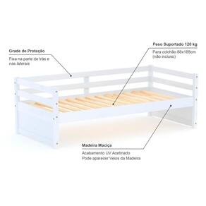 Material Principal: Madeira | Cor: Branco | Necessita Montagem: Sim | Acompanha Colchão: Não | Tipo de Cama: Solteiro