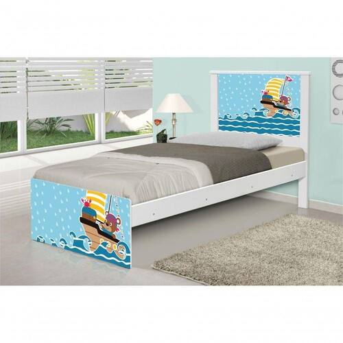 Cama Solteiro Ursinho Pirata Com Colchão Cama Solteiro Juvenil Barcelona Adesivada Ursinho Pirata com Colchão Ref. 1467