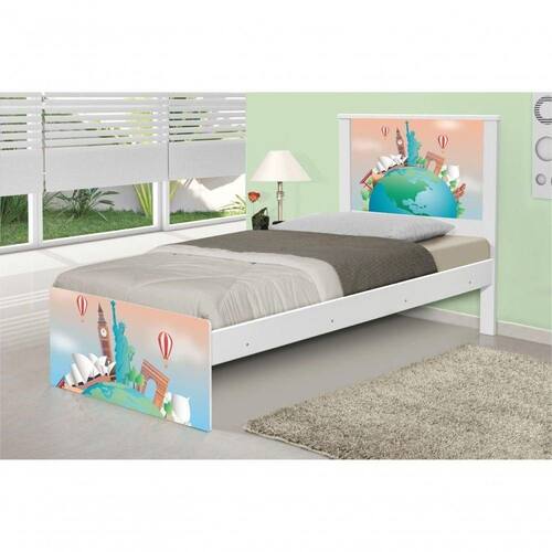 Cama Solteiro Volta Ao Mundo Cama Solteiro Juvenil Barcelona Adesivada Volta ao Mundo Ref. 1429