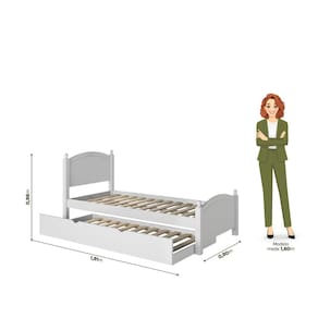 Adicione praticidade e elegância ao seu espaço com a Cama de Solteiro com Cama Auxiliar. Fabricada com materiais de alta qualidade, é a escolha ideal para quem busca um móvel resistente, durável e com um design moderno que complementa a decoração do ambiente. Com estrutura sólida em madeira de pinus tratada e MDF de 2,2 cm de espessura, esta cama é projetada para suportar até 120 kg em ambas as camas (principal e auxiliar). O acabamento impecável em pintura PU e UV branco confere um toque de sofisticação, além de oferecer proteção e durabilidade ao móvel. Principais Características: