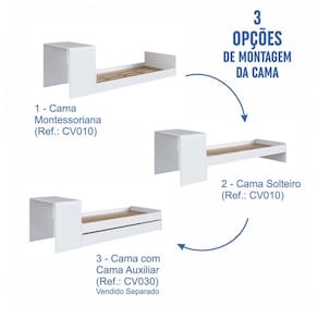 - Acompanha: Cama Solteiro + Escrivaninha + Cama Auxiliar + Kit Ferragens + Manual de Montagem