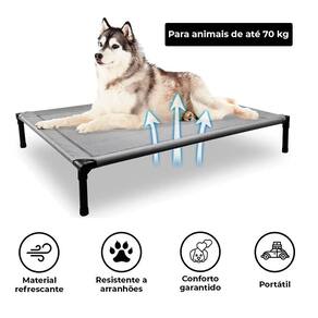 - A Cama Elevada Pet suporta animais de até 70 kg