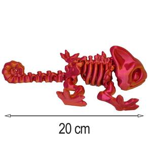 O Camaleão Esqueleto Articulado é um brinquedo decorativo impresso em 3D com acabamento Laranja Amarelo, medindo 20 cm de comprimento.