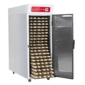 ACâmara Climática Gpaniz Epóxi 40 Esteiras Epóxi Monofásico 127V CC 1000 G2é uma ferramenta essencial paracontrolar a fermentação da massa, permitindoacelerar ou retardaro processo conforme necessário. Ela opera em uma faixa detemperatura de 5C até 35Ce pode acomodar 40 esteiras no tamanho padrão (58 x 70 cm).A câmara possuiporta esteiras em inox 430e um excelente isolamento térmico proporcionado pelainjeção de poliuretano expandidoem peça única. Seu controlador é simples e funcional,programável para aquecimento ou refrigeração, com possibilidade de programação diária e semanal. Ela vem equipada com umsensor de temperatura no interior da câmara e um sensor de nível no reservatório de água, garantindo proteção ao sistema em caso de falta de água na caldeira externa.