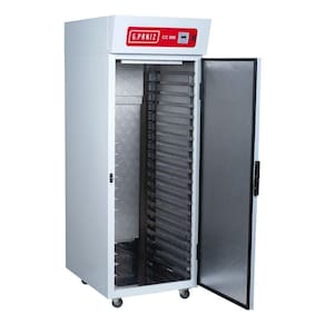 Câmara Crescimento 20 Bandejas Cc500 G.paniz Câmara Epóxi/alumínio 110v Câmara Crescimento 20 Bandejas CC500 G.Paniz. Controla a temperatura, acelerando ou retardando a fermentação da massa. Excelente isolamento térmico possibilitado pela injeção de poliuretano expandido em peça única. Controlador simples e funcional, programável para aquecimento ou refrigeração, possibilitando sua programação diária e semanal. Com sensor de temperatura no interior da câmara. Com sensor de nível no reservatório de água, garantindo proteção ao sistema em caso de falta de água na caldeira externa. Temperatura de 5C até 35C. Menor consumo de energia devido ao espaço interno ser menor, atingindo a temperatura desejada em curto espaço de tempo. Sistemas de resfriamento, aquecimento e ventilação otimizados, reduzindo o consumo energético e não ressecando o pão. Rodízios frontais com trava. Revestimento interno em aço inox 430 ou alumínio lavrado stucco. Estrutura externa em chapa de aço carbono epóxi branco. Temperatura de 5C até 35C. Porta esteiras em inox 430. CAPACIDADE: 20 esteiras no tamanho padrão (58 x 70 cm). CONSUMO: 0,3/1,0kWh. POTÊNCIA: 1/5cv. DIMENSÕES EXTERNAS (CxAxL) - 106,4x200x69,2cm. PESO: 93kg. Equipamento certificado pelo OCP 0070 conforme Portaria INMETRO - 148/2022. Câmara Crescimento 20 Bandejas CC500 G.Paniz é na Atau. Apresentação do Produto - Marca - G.Paniz Modelo - CC500 Capacidade - 20 Bandejas Frente - 1,06 m Altura - 2,00 m Profundidade - 69 cm Temperatura - 5C a 35C Peso - 93 Kg Consumo - 0,3/1,0kWh