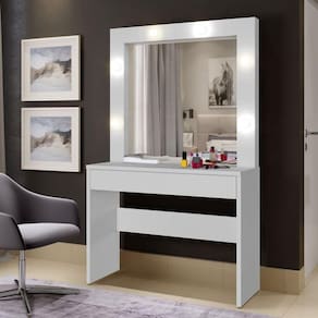 O Camarim Romance é um produto que todos deveriam ter em casa para se embelezar, mas não somente para isso, já que ele possui uma viabilidade enorme, podendo ser utilizado de distintas formas. Ele possui 1 espelho central com 6 lâmpadas de LED que cobre todas as suas laterais e agrega ainda mais charme para esse modelo. Além disso, possui 1 gaveta central com divisórias para maquiagem permitindo a melhor organização de seus objetos na hora de se produzir.