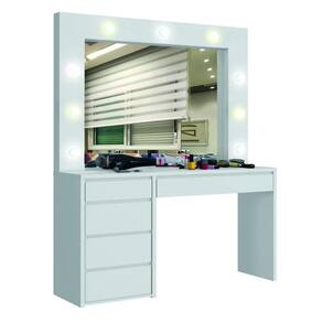 Camarim com Lâmpadas de LED - Berlim-Branco - Mavau Móveis A Camarim Berlim é o ambiente perfeito para quem quer um cantinho especial para se arrumar diariamente. Além de lindo e possuir um desing moderno, é feito em MDF com o tampo e as laterais em 25mm, o que traz resistência e durabilidade para o seu móvel, lâmpadas bivolt em LED, inclusas, e gavetas com corrediças telescópicas e divisórias internas. Aproveite já esse luxo de camarim! Faz parte do anúncio: 1 Camarim com Lampadas de LED - Berlim - Mavau Móveis Obs: Objetos decorativos não acompanham o produto. Particularidades da Penteadeira: Características - Penteadeira MDF - Possui 5 gavetas com corrediças telescópicas - 9 lâmpadas bivolt - Interruptor com tomada embutido - Madeira Ecologicamente Correta - Baseado em conceitos sustentáveis Dimensões da Penteadeira Altura: 1,84 metros Largura: 1,36 metros Profundidade: 45,8 centímetros Informações Importantes: - Produtos podem apresentar diferenças de tonalidades entre a foto na tela e o produto real, devido a calibração de cor de tela. - Limpar com flanela ou pano macio. Não utilizar álcool. Não utilizar produtos abrasivos ou corrosivos. - Nós prezamos pela qualidade da entrega em primeiro lugar, trabalhamos com transportadoras altamente selecionadas e os melhores materiais de embalagem.. -.Todos os produtos vão desmontados, é necessário a montagem por um montador profissional. Não responsabilizamos pela montagem. - Objetos de decoração não incluso. - Certifique-se de que o produto caiba em elevadores e vãos de escadas, não fazemos içamentos ou desmontagens de produtos. Quaisquer despesas deste tipo ficam a cargo do cliente. - Garantia de 3 meses contra defeitos de fabricação. Marca: Não Informado