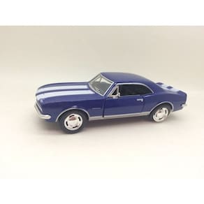 Modelo: Camaro Z-28 1967Marca: KinsmartEscala: 1:37Material: Metal e plasticoPneus: BorrachaDimensoes: 13 cm compx 5 cm largx 3,7 cm alturaAbre Portas: SimAbre Capo: NaoAbre Porta-malas: NaoBase expositora: NaoCaixa acrilico: Nao