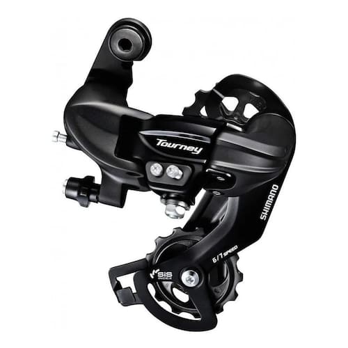 Câmbio traseiro shimano tourney rd-ty300 sgs s/ gancheira - 6v / 7v - até 34d Atenção: - item vendido pela shimano brasil em saco plástico; - específico para relações: 3x7v, 2x7v ou 1x7v; - compatível com catraca / roda livre 14/28 ou 14/34 com pedivela triplo ou duplo; - compatível com cassete de 7v 11/28, 12/28, 12/32, 11/34 com pedivela triplo ou duplo; - montagem com cassete acima de 36 dentes, não garante o funcionamento perfeito da relação; - sem gancheira; - fixação: direta - parafusado diretamente na gancheira do quadro. O rd-ty300 sgs é o câmbio traseiro da linha tourney da shimano, oferece um funcionamento preciso para uso urbano, em passeios e trilhas leves. Esse modelo é compatível com pedivela triplo, duplo ou single em relação de 6v ou 7v. O cassete ou catraca deve ter o maior cog de até 34 dentes. A fixação é feita por parafuso diretamente na gancheira do quadro. Especificações: - marca: shimano; - linha: tourney; - modelo: rd-ty300 sgs; - modalidade: mtb leve / trekking / urbano; - específico para relações: 3x6v, 3x7v , 2x7v, 1x7v; - compatível com: 6 e 7 velocidades; - sistema: double serve - servo duplo com polias de 13d cada; - cage: sgs - longo; - tamanho máximo de dentes do cassete: 34d; - capacidade total: 43d - não é o tamanho do maior cog do cassete; - diferença máxima das coroas do pedivela: 20d; - fixação: direta - parafusado diretamente na gancheira do quadro; - material: aço, plástico; - cor: preto; - peso aproximado: 325g; - origem: china - part. Number: ardty300d. Observação: - item segue em saco plástico; - por bluecycle; - 01 ano shimano brasil; Aguardamos o seu pedido Indian bike shop