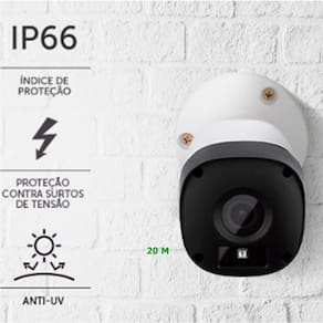 Com o infravermelho, a câmera alcança uma distância de até 20 metros no escuro, podendo ser utilizada em ambientes com pouca ou nenhuma luminosidade.