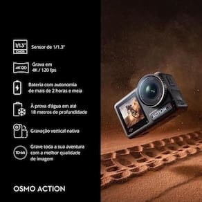 A DJI Osmo Action 4 Standard Combo é uma câmera de ação desenvolvida para capturar vídeos e fotos com alto nível de detalhamento, mesmo em ambientes desafiadores. Equipada com sensor maior de 1/1.3, ela entrega excelente desempenho em baixa luminosidade, cores mais vivas e maior alcance dinâmico, ideal para aventuras, esportes radicais, viagens e produção de conteúdo profissional.