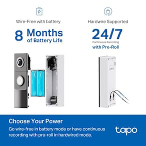 Câmera de campainha de vídeo inteligente TP-Link Tapo com carrilhão, bateria ou com fio, visão noturna colorida QHD 2K, sem taxa mensal, visão ultra-ampla da cabeça aos pés de 180°, chamada de anel, - ?Flexibilidade completa – com fio e sem fio?O Tapo D225 oferece aos usuários total flexibilidade para montar a campainha conforme necessário. Se estiver conectado (8-24 V), os usuários podem aproveitar a fiação da campainha existente para instalar. A fiação rígida oferece uma opção única para gravação contínua 24 horas por dia, 7 dias por semana, para monitoramento abrangente. A câmera de campainha também tem uma bateria embutida de 10.000 mAh, permitindo uma instalação flexível sempre que necessário para até 8 meses de vida útil da bateria entre cargas. - ?Incrível visualização ao vivo QHD 2K?Visualização com incrível monitoramento de clareza em detalhes finos. Identifique facilmente rostos mesmo quando ampliado, mostrando tudo o que você precisa ver fora de sua porta - ?Campo de visão da cabeça aos pés de 180°?Diga adeus aos pontos cegos. Veja a imagem completa com um campo de visão ultra amplo de 180° da cabeça aos pés. A câmera frontal ideal garante que você capture todos os detalhes de cima para baixo, oferecendo cobertura completa. - ?Chamada telefônica – nunca perca um visitante?Receba um telefonema para atender sua porta sem abrir o aplicativo Tapo Responda rapidamente aos visitantes com conveniência de um clique. Mantenha-se conectado, mantenha-se informado e nunca mais perca um visitante. (As chamadas são geradas pelo aplicativo e não usarão minutos de celular) - ?Detecção de pessoas/pacotes/veículos?Esta campainha inteligente está equipada com tecnologia avançada de IA que detecta qualquer pessoa, pacote ou veículo se aproximando de sua propriedade. Ele envia notificações em tempo real diretamente para o seu dispositivo indicando a detecção de pessoa/veículo/pacote, com a capacidade de selecionar uma, todas ou nenhuma notificação de detecção. - ?Armazenamento seguro sem necessidade de assinatura?Salve imagens gravadas em um cartão microSD (até 512 GB, não incluído) ou assine o Tapo Care para armazenamento em nuvem, que economiza 30 dias de histórico de vídeo. Sua privacidade é nossa prioridade quando se trata de armazenar e transmitir informações confidenciais, como vídeos da câmera e informações de identidade. Para garantir a segurança robusta dos dados, a Tapo implementa criptografia AES de 128 bits e protocolos de criptografia TLS 1.2. (: , , ) - ?Visão noturna colorida com holofote?A campainha inteligente Tapo oferece segurança adicional 24 horas por dia, 7 dias por semana. O holofote incluído é ativado quando o movimento é detectado (o brilho pode ser ajustado) para maior dissuasão. O holofote também permite uma visão noturna colorida garantindo maior visibilidade e melhor segurança, mesmo em condições de pouca luz. - ?Carrilhão modular e cunhas incluídas?O carrilhão modular interno oferece posicionamento conveniente para alertas, não importa onde você esteja em sua casa. As cunhas horizontais de 15° e verticais de 5° incluídas são componentes versáteis que permitem ajustar os ângulos de instalação otimizados para capturar a área desejada. - ?Áudio bidirecional e instruções de resposta rápida?Comunicações claras e eficientes são possíveis com áudio bidirecional integrado. Para maior comodidade, selecione em uma lista de respostas rápidas predefinidas para responder rapidamente às pessoas na porta. - ?Funciona com Alexa e Google?Use seu assistente de tela favorito, como Alexa e Google, com a câmera de campainha D225 para ver e atender as pessoas na sua porta.