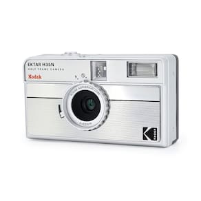 KODAK Câmera de filme de meia moldura EKTAR H35N, 35 mm, reutilizável, sem foco, função de lâmpada, filtro estrela integrado, lente melhorada revestida (filme e bateria AAA não incluídos) (prata - ? Filtro de estrela embutido: fotografa pequenas fontes de luz para criar um reflexo de quatro feixes em pontos de luz. - Lente de vidro revestida e melhorada: um elemento da lente de vidro aguça a clareza das imagens. - Função da lâmpada (longa exposição): ajuda a capturar o rastro de objetos em movimento, principalmente à noite. - Orifício do tripé: usa um tripé para manter sua câmera estável para suportar fotografias de longa exposição. - Película, bateria AAA, liberação de cabo e tripé não estão incluídos no produto.