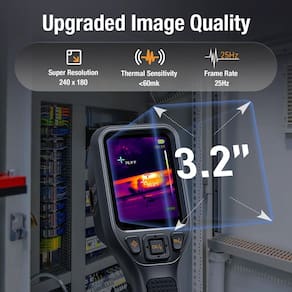- Melhora a imagem térmica: Teslong TTM120S tela HD de 3,2 polegadas câmera térmica com resolução IR 120x90, usando tecnologia de superresolução aumenta a clareza da imagem térmica de 120 x 90 a 240 × 180 e, com taxa de atualização de quadro de 25 Hz, a câmera de imagem térmica fornece imagens claras e suaves, tornando-a ideal para manutenção industrial, inspeções elétricas, diagnósticos de edifícios e inspeções HVAC