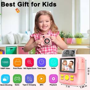 -?Câmera infantil com impressão em um toque?A câmera instantânea infantil GKTZ suporta impressão automática instantânea de papel fotográfico vibrante “preto e branco” de alta qualidade, que vem diretamente do corpo da câmera. Não são necessários cartuchos de tinta volumosos, o que o torna mais eficiente em termos de energia e ecologicamente correto, eliminando a necessidade de tinta e toner.
