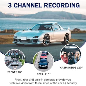- [Câmera de painel de 3 canais]: a câmera de 3 canais pode gravar vídeo até FHD 2K na frente, pode monitorar simultaneamente a frente, traseira e interior do veículo para maximizar a cobertura da estrada, melhorar muito a visão noturna e fornecer imagens e vídeos nítidos e nítidos. A câmera de painel é uma combinação de câmeras frontal, traseira e interna. Captar vídeos na frente, atrás e dentro do carro simultaneamente ajuda a reter e apresentar evidências em situações inesperadas, como colisão.