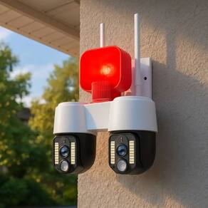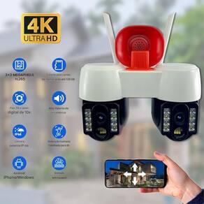 Você pode gravar áudio com a sua voz personalizada para espantar intrusos, com detector de movimento e a sua voz gravada, e ao passar o intruso a camera vai reproduzir sua voz gravada de até 10 segundos.