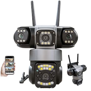 A câmera de segurança externa de lente tripla com vigilância inteligente de 360 graus. Revolucione sua segurança com 3 lentes e 3 visualizações. Permite o monitoramento simultâneo de três áreas distintas em uma tela. Duas lentes grandes angulares fixas capturam as vistas esquerda (L) e direita (R), enquanto a lente PTZ central (Pan-Tilt-Zoom) gira 320 na horizontal e 90 na vertical, tudo controlado remotamente por meio do aplicativo.
