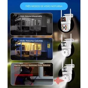 Câmera de segurança wi-fi lente dupla smart 3 + 3 mp com app icsee: a proteção inteligente para sua casa Funcionalidades Esta câmera oferece uma solução completa e inteligente para monitoramento de ambientes internos e externos, permitindo que você mantenha um olho em dois pontos da sua casa a qualquer hora e de qualquer lugar. Com uma resolução nítida de 3 mp, esta câmera captura imagens claras e detalhadas, garantindo que você não perca nenhum detalhe importante. Seu design discreto e moderno se integra perfeitamente à decoração de qualquer ambiente, enquanto suas capacidades de visão noturna garantem uma vigilância contínua, mesmo nas condições mais escuras. O recurso de conectividade wi-fi permite que você acesse a transmissão e os vídeos gravados através do aplicativo icsee em seu smartphone ou tablet, proporcionando uma experiência de monitoramento conveniente e em tempo real. Além disso, a funcionalidade de áudio bidirecional permite comunicação remota, permitindo que você interaja com sua família ou até mesmo dissuadir intrusos indesejados. Com detecção de movimento inteligente e notificações instantâneas, você será alertado sempre que atividades suspeitas forem detectadas, proporcionando tranquilidade e segurança adicionais. Além disso, a opção de armazenamento em nuvem ou local oferece flexibilidade na gestão de suas gravações, garantindo que seus dados permaneçam seguros e acessíveis. Essa câmera é motorizada e possui movimento ptz, proporcionando um campo visual de 355. E não se preocupe com a temperatura, pois ela suporta desde 0c até 60c. Proteja o que mais importa com a - sua guarda pessoal confiável, mantendo sua casa segura 24 horas por dia, 7 dias por semana. Atenção: para uso externo é necessário protetor para não Molhar os conectores Dupla lente, dupla tela - veja completamente tudo: Descubra um novo nível de vigilância com a câmera de segurança wi-fi lente dupla smart 3 + 3 mp Equipada com lentes 3.6mm + 6mm, esta câmera permite que você veja imagens de forma independente em duas telas separadas. Detecção humana e luz de polícia: Com a detecção avançada de movimento de ia, nossa câmera identifica rapidamente alvos humanos e dispara um alerta imediato para o seu telefone. Além disso, a função de luz de polícia pode ser ativada para afastar intrusos indesejados. Visão colorida e noturna de alta qualidade: Desfrute de imagens nítidas em até 25 metros, seja no modo colorido ou no modo infravermelho. A transição suave entre os modos garante que você nunca perca um detalhe. Rastreamento automático inteligente: A câmera segue automaticamente movimentos humanos, mantendo-os no centro do quadro. Você recebe alertas em tempo real sempre que algo se move. Comunicação bidirecional: Converse em tempo real com quem está perto da câmera usando o microfone e alto-falante embutidos. Ideal para dar instruções ou dissuadir intrusos. Ip66 à prova d'água e poeira: Feita para enfrentar os elementos, nossa câmera é adequada para uso ao ar livre em qualquer clima. Armazenamento flexível: Fácil conexão wifi 2.4ghz: Configure facilmente a câmera para se conectar à sua rede wi-fi usando o aplicativo icsee. Acesso remoto simples: Mantenha um olho na sua propriedade onde quer que esteja com acesso remoto via aplicativo icsee. Atenção: para uso externo é necessário protetor para não Molhar os conectores O que acompanha a compra 1x câmera de segurança wi-fi smart 1x cabo de conexão com internet e energia 2x parafusos e buchas 1x manual de instruções 1x suporte de fixação na parede Homologação Anatel: 147612214414