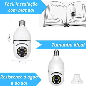 A câmera lâmpada wi-fi ip de segurança é a solução ideal para monitorar a sua casa ou empresa. Com instalação fácil e rápida, basta conectá-la em um bocal de lâmpada comum. Oferece visão em tempo real, controle de movimentação e zoom pelo celular, além de luz e áudio bidirecional. Possui alta resolução full hd 1080p e detector de movimento que envia notificações diretamente para o seu celular.
