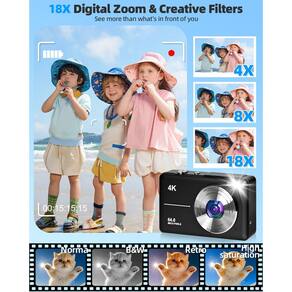 -?Liberte sua criatividade?As câmeras de vlog para fotografia podem ser usadas como webcam para transmissão ao vivo e vlogs. A luz LED embutida garante que você possa tirar fotos brilhantes mesmo em condições de pouca luz. Além disso, essa câmera de vlog possui recursos como lapso de tempo, temporizador automático, captura contínua, registro de data e hora, pausa de vídeo e gravação em loop. Essas câmeras digitais de apontar e disparar permitem que as crianças liberem sua criatividade e cultivem o interesse pela fotografia.