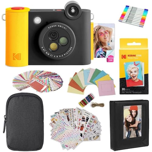 KODAK Smile+ Pacote de presente para câmera de impressão instantânea digital 2 em 1 e impressora fotográfica + capa + papel fotográfico adesivo Zink 2 x 3 pacotes com 20 álbuns + conjuntos de adesivos