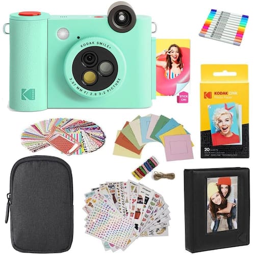 KODAK Smile+ Pacote de presente para câmera de impressão instantânea digital 2 em 1 e impressora fotográfica + capa + papel fotográfico adesivo Zink 2 x 3 pacotes com 20 álbuns + conjuntos de adesivos
