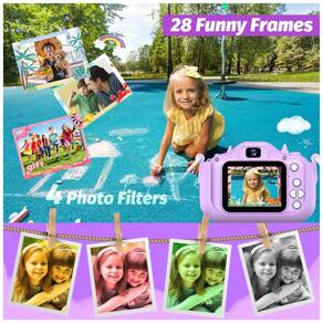 Presente ideal para 3-9 anos: perfeita para Natal, aniversários e aventuras ao ar livre, com modo selfie divertido e dupla lente frontal/traseira.