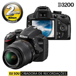 Não deixe que a simplicidade de uso e o tamanho compacto da D3200 te engane — dentro desta avançada HD-SLR estão diversos recursos de última geração da Nikon: um sensor CMOS de 24.2 MP em formato DX para fotografias e vídeos deslumbrantes sob qualquer iluminação, processamento de imagem EXPEED 3 para rápida operação e efeitos criativos na própria câmera, gravação de vídeos em Full HD (1080p) com apenas um toque, Modo Guia inovador para instruções em câmera e muito mais.